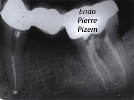 Une révision endodontique (retraitement endodontique) et quatre bouchons apicaux au MTA permettent de conserver une molaire présentant de multiples perforations apicales